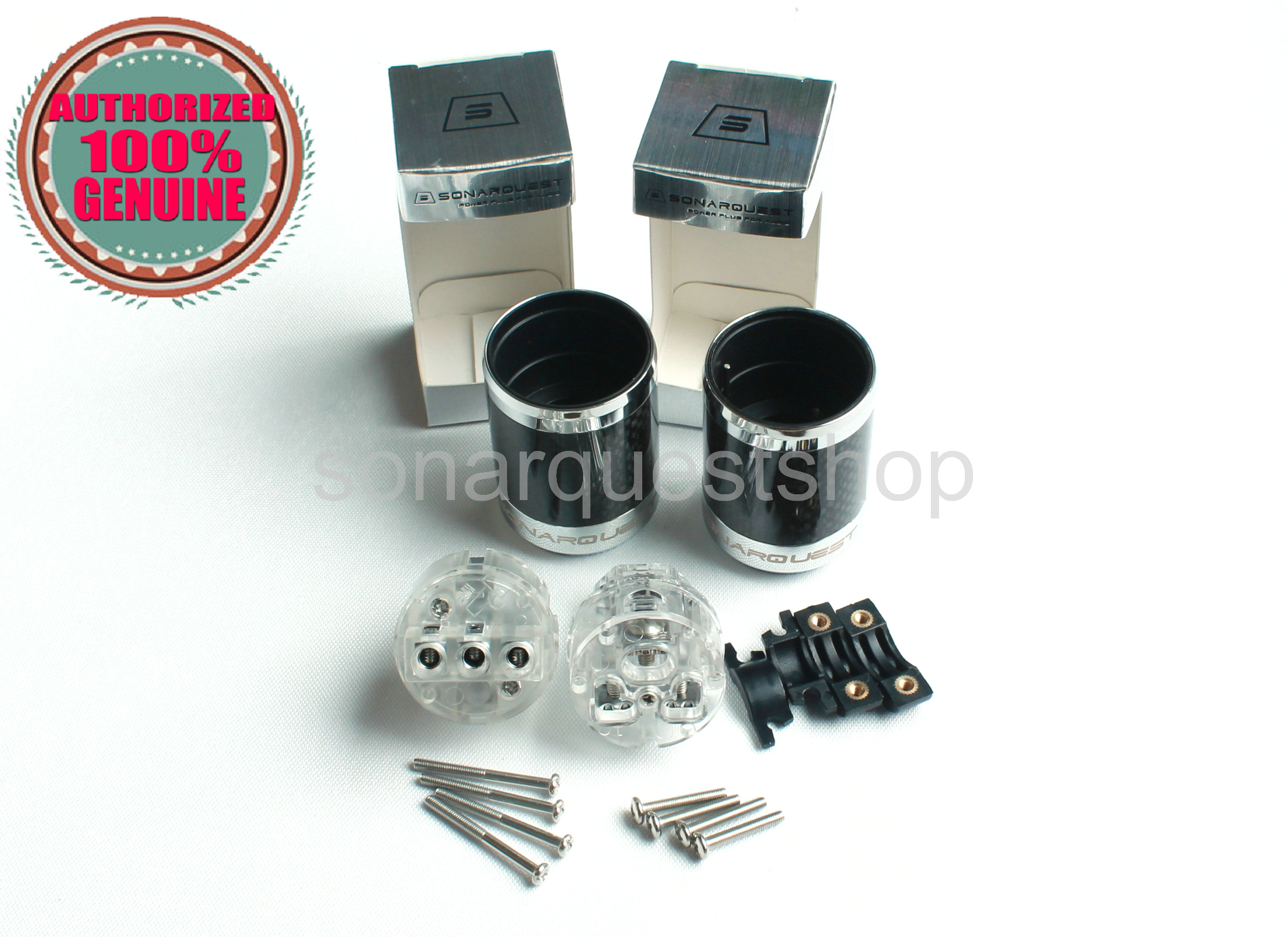 SONARQUEST SQ-E39(R)T + SQ-C39(R)T EU Rhodium Plated UT Carbon fiber Power Plug & IEC Connector