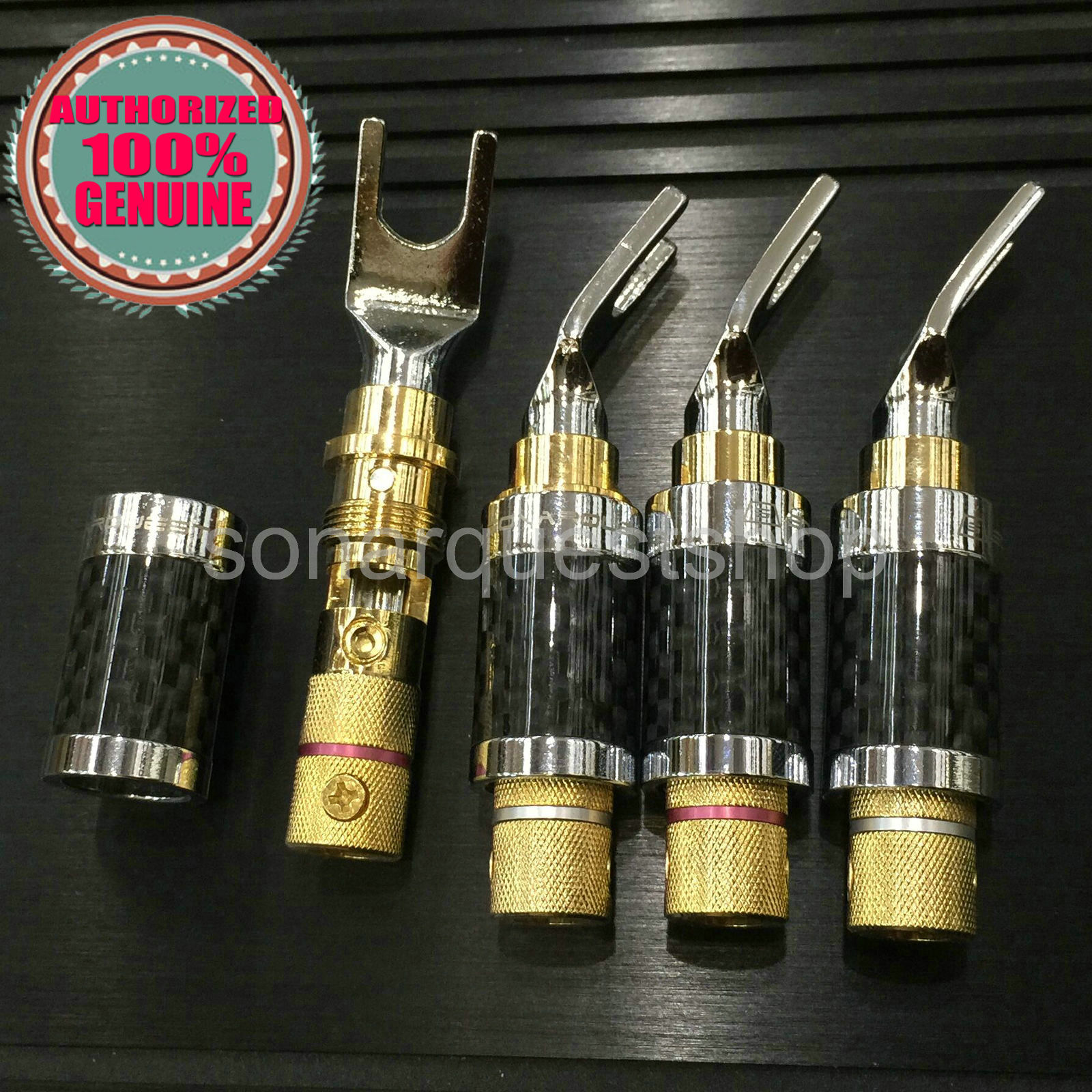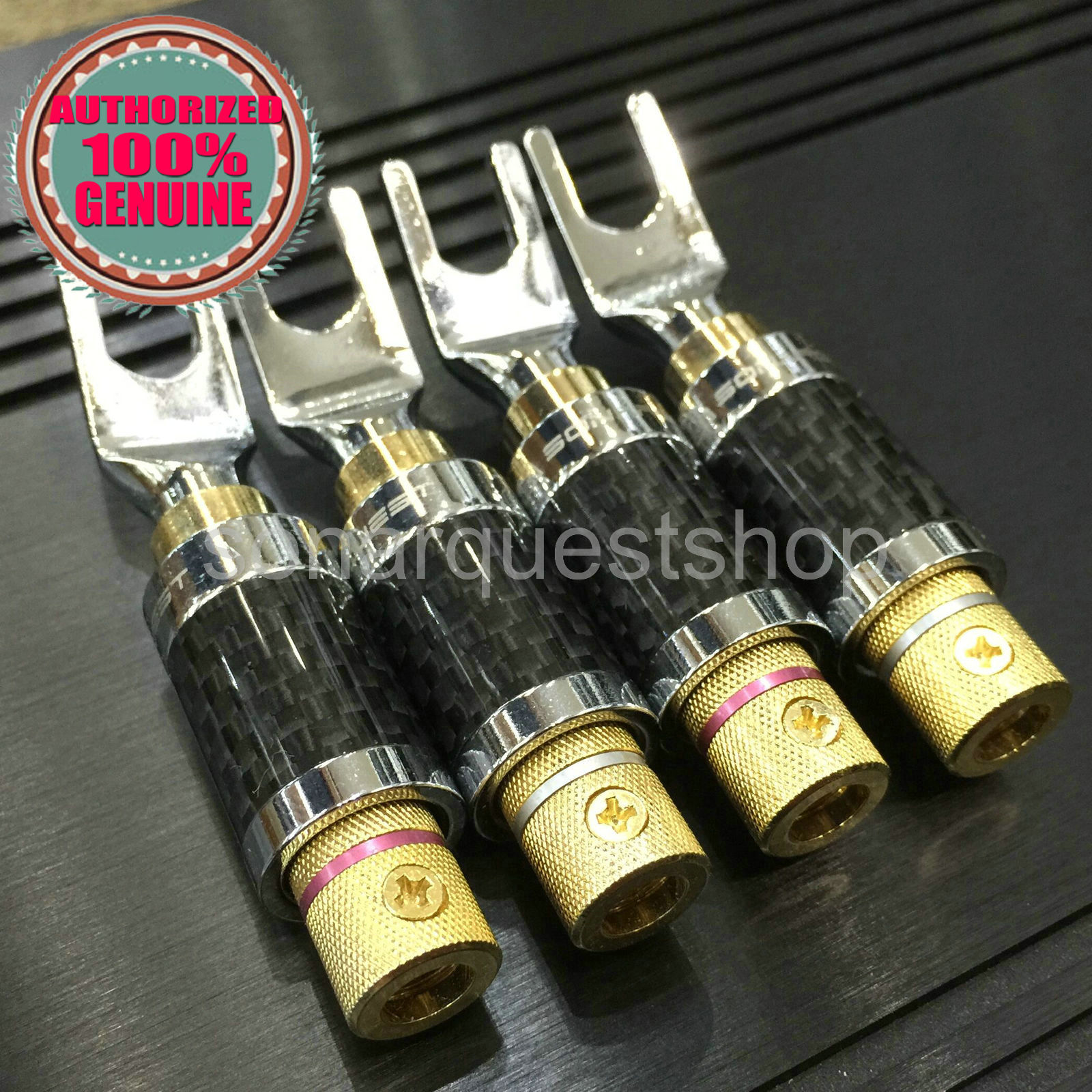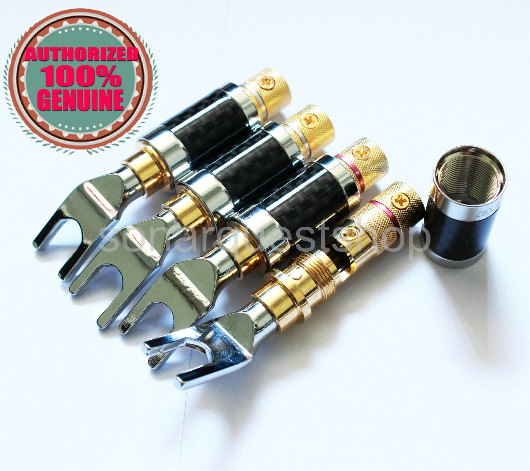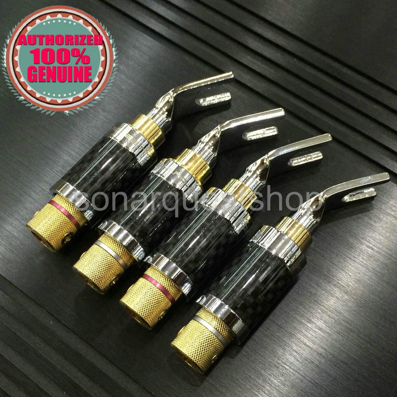 SONARQUEST CS-20 Carbon Fiber Rhodium + Gold Plated Y Spade plug Connector x 4 Pcs